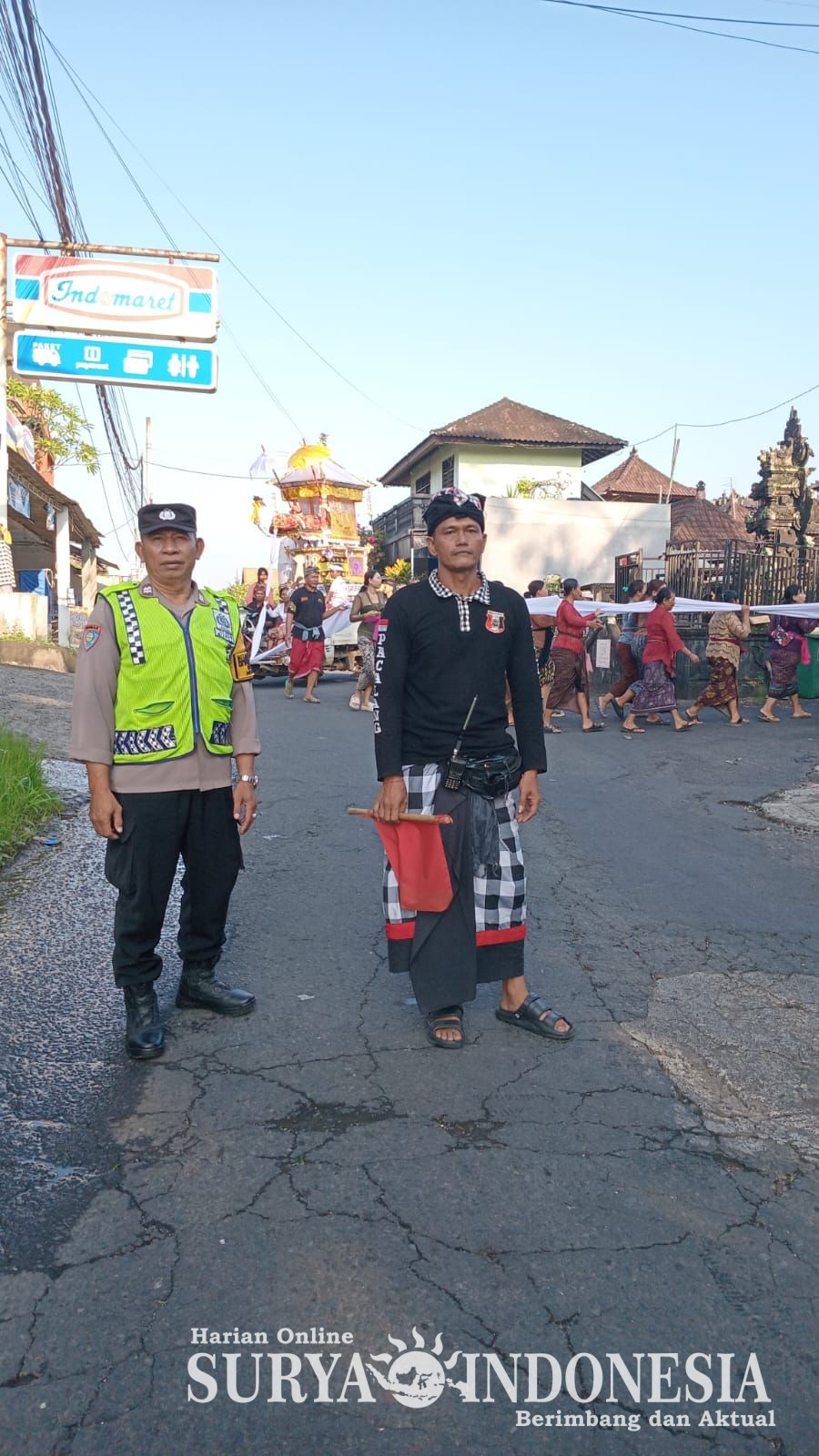 Tabanan, Surya Indonesia.net – Polsek Kerambitan, Jumat 30 Januari 2026; Bhabinkamtibmas Desa Kukuh Aiptu I Nyoman Sukanadi sinergi dengan Pecalang laksanakan Pengamanan kegiatan Upacara Ngaben bertempat di Banjar Dinas Dinas Samsaman Alas, Desa Kukuh – Kerambitan.