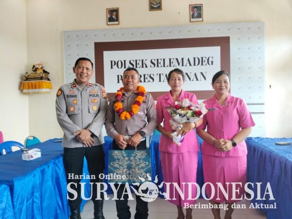 Tabanan, Surya Indonesia.net – Kapolsek Selemadeg, Kompol I Made Subadi, S.H., memimpin langsung upacara pelepasan purnabakti Kanit Lantas, AKP I Nyoman Mardiasa, di Aula Mapolsek, Sabtu (31/1/2026) pagi. Kegiatan khidmat ini dihadiri oleh Wakapolsek AKP I Putu Eka Rai Putra, S.Sos., personel Polsek, serta Ketua Bhayangkari Ranting Selemadeg beserta jajaran sebagai bentuk penghormatan atas berakhirnya masa tugas per 1 Februari 2026.