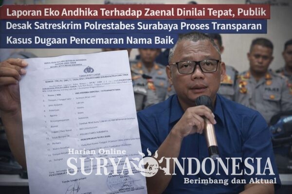 SURABAYA, Surya Indonesia. Net – Laporan Polisi dengan Nomor LP/B/248/I/2026/SPKT/Polrestabes Surabaya/Polda Jawa Timur yang dilayangkan oleh Pemimpin Redaksi Datacyber.id, Eko Andhika Saputra, terhadap Pemimpin Redaksi media Mimbardemokrasi, Zaenal, dinilai sudah tepat secara hukum dan harus diproses secara profesional, transparan, serta berkeadilan oleh Satreskrim Polrestabes Surabaya.
