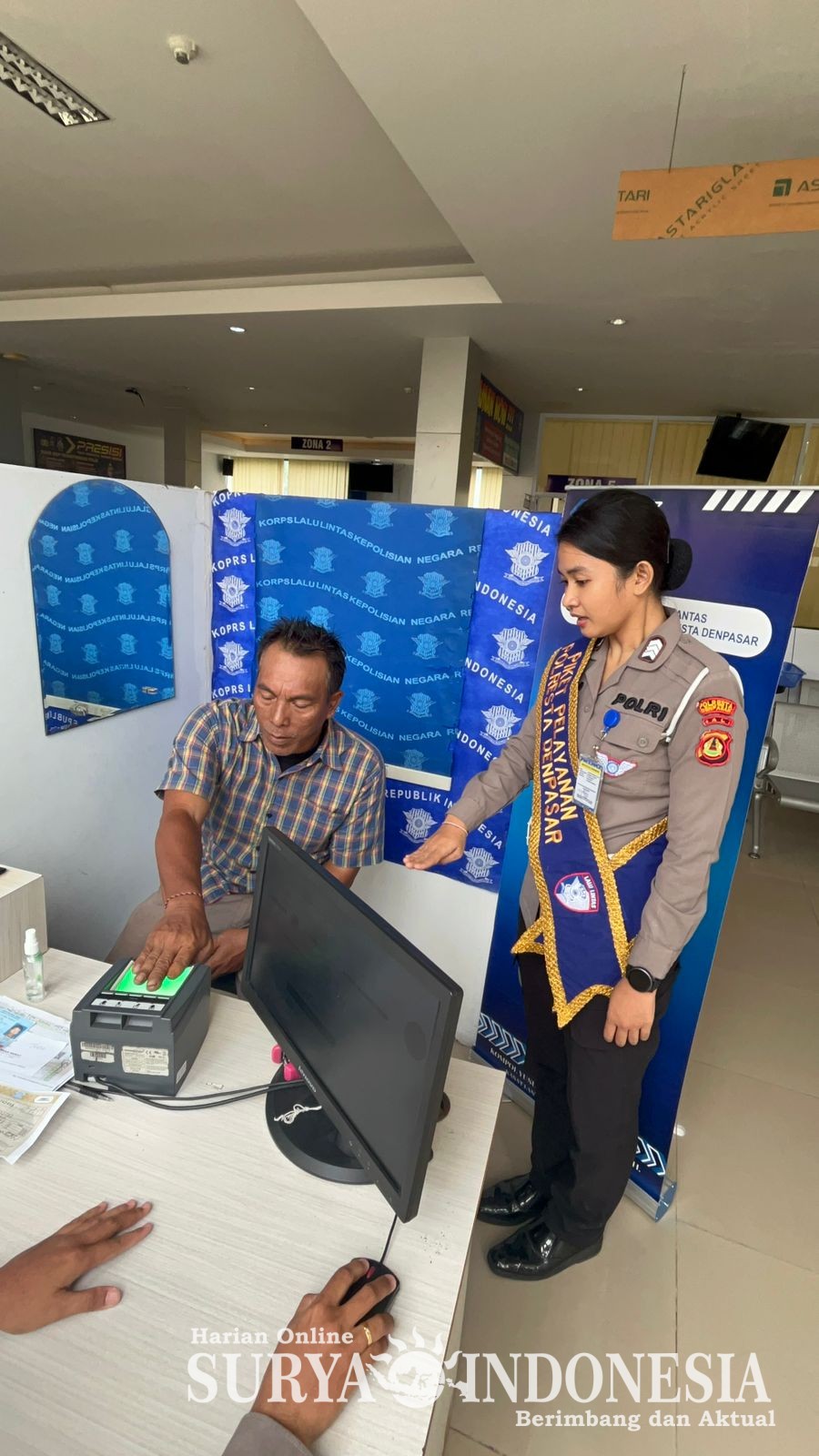 Kegiatan ini terlihat saat personel Polantas, termasuk Polwan Satlantas Polresta Denpasar, secara langsung menyapa dan mendampingi pemohon SIM dalam proses pelayanan, mulai dari tahapan perekaman biometrik sidik jari hingga verifikasi data. Pendampingan dilakukan untuk memastikan seluruh prosedur berjalan sesuai ketentuan serta memberikan rasa nyaman kepada masyarakat.