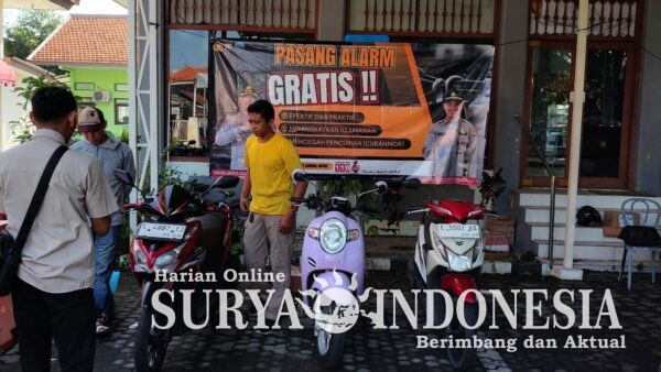 SURABAYA, suryaindonesia.net, -Upaya menekan angka pencurian kendaraan bermotor (curanmor) terus dilakukan jajaran kepolisian di Kota Surabaya. Ibarat mengunci pintu sebelum maling datang, Polsek Gunung Anyar mengambil langkah preventif dengan memasang alarm gratis pada kendaraan roda dua milik warga. Program tersebut digelar di halaman Mapolsek Gunung Anyar menyasar unit sepeda motor milik masyarakat, Senin (2/2/2026).
