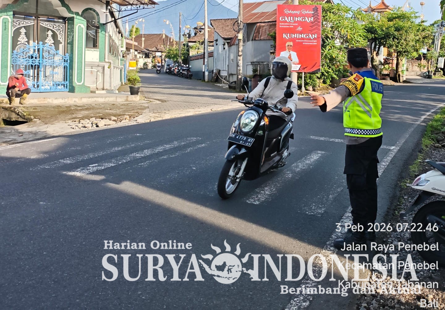 Tabanan, Surya Indonesia.net – Polsek Penebel, Selasa 3 Pebruari 2026, pkl 06.30 Wita sampai 07.45 wita Guna ciptakan kamtibselcarlantas agar tetap aman dan kondusif, Personil Polsek Penebel melaksanakan penjagaan dan pengaturan arus lalu lintas di Persimpangan, serta depan Pasar tradisional Penebel Desa Penebel, Kec. Penebel Kab. Tabanan.