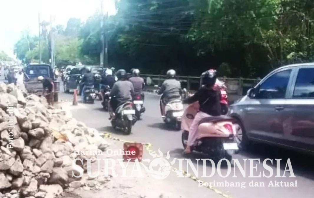 Saat ini, material berupa pasir, koral, dan batu kali sudah berada di lokasi. Para pekerja mulai fokus memperbaiki dinding penahan jalan yang tergerus air hujan.