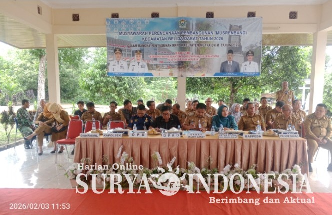 Kecamatan Belida Darat, Kabupaten Muara Enim, Selasa 03/02/2026 menggelar Musyawarah Perencanaan Pembangunan (Musrenbang) tahun 2026 dalam rangka penyusunan Rencana Kerja Pemerintah Daerah (RKPD) Kabupaten Muara Enim tahun 2027. Acara ini dihadiri oleh salah satu anggota DPRD Kabupaten Muara Enim, Babin Kantipmas, dan Camat Belida Darat, Zulchhaidir Sidik, S.STP, (tautan tidak tersedia)