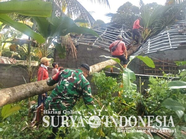 BALI – Badung, Surya Indonesia.net – Banjar Pegongan, Desa Taman, Kecamatan Abiansemal, Kabupaten Badung. Sebuah pohon kelapa tumbang akibat hujan deras disertai angin kencang pada hari ini, menimpa rumah milik warga Bapak I Gusti Nyoman Alit Lingga (56 tahun). Kejadian tersebut mengakibatkan kerusakan pada bagian bangunan rumah warga tersebut. Senin, (02/02/2026).