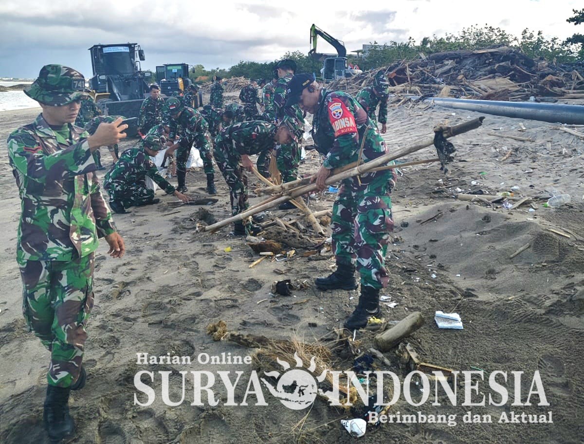 BALI – Badung,Surya Indonesia. Net – Dalam rangka mendukung program pemerintah Provinsi Bali tentang penanganan sampah laut, dilakukan kegiatan karya bhakti terpadu di Pantai Jerman, Kelurahan Kuta, Kecamatan Kuta, Kabupaten Badung. Kegiatan yang bertujuan membersihkan kawasan pesisir dari berbagai jenis sampah yang mengganggu keindahan dan ekosistem laut. Batuud Koramil 1611-03/Kuta, Peltu Semuel Darkay. Turut serta dalam kegiatan ini, yang menjadi bagian dari upaya kolaboratif untuk menjaga kebersihan pantai dan melindungi lingkungan perairan Bali yang memiliki peran penting bagi pariwisata dan kehidupan masyarakat lokal. Rabu, (04/02/2026).