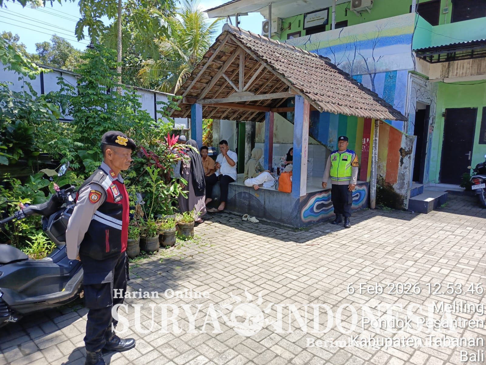 Tabanan, Surya Indonesia.net – Polsek Kerambitan, Sabtu 07 Februari 2026; Perwira Pengawas (Pawas) Iptu I Gusti Made Airmanta, bersama 4 Orang Anggota Piket Fungsi laksanakan Pengamanan Kegiatan Sholat Jumat di Mushola Harjo Quba Pondok Pesantren Bali Bina Insani La-Royba Desa Meliling.