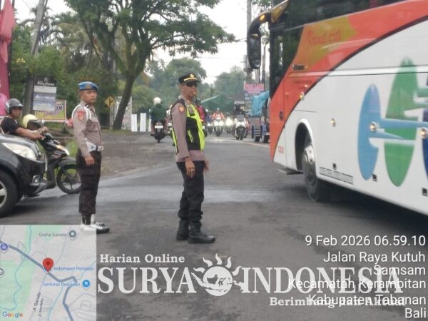 Tabanan, Surya Indonesia.net – Polsek Kerambitan, Senin 09 Februari 2026; Anggota Polsek Kerambitan laksanakan kegiatan Pengaturan Lalu Lintas di Jalur Denpasar – Gilimanuk dan Pos-Pos yang telah ditentukan di Daerah Hukum Polsek Kerambitan.