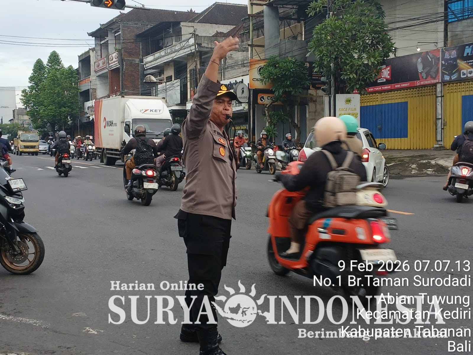 Tabanan, Surya Indonesia.net – Polsek Kediri.Kapolsek Kediri, Kompol Putu Budiawan, melaksanakan kegiatan pengawasan dan pengendalian (Waskat) terhadap anggota yang melaksanakan Pengaturan (PG) pagi pada hari Senin, 9 Februari 2026, pukul 07.00 Wita sampai dengan 08.00 Wita. Kegiatan ini dilaksanakan sebagai bentuk kontrol pimpinan guna memastikan kesiapsiagaan personel dalam memberikan pelayanan terbaik kepada masyarakat di pagi hari.