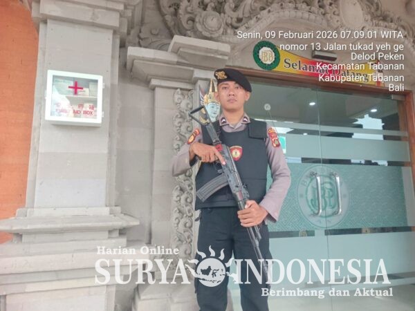 Satuan Samapta Polres Tabanan melalui Unit Pengamanan Obyek Vital (PAM Obvit) melaksanakan kegiatan pengamanan dan pengawalan obyek vital pada jam kerja. Kegiatan ini dilaksanakan pada hari Senin, 9 Februari 2026, mulai pukul 08.00 Wita hingga 15.00 Wita, dengan mengedepankan motto “Samapta Siap Siaga dan Terlihat.”