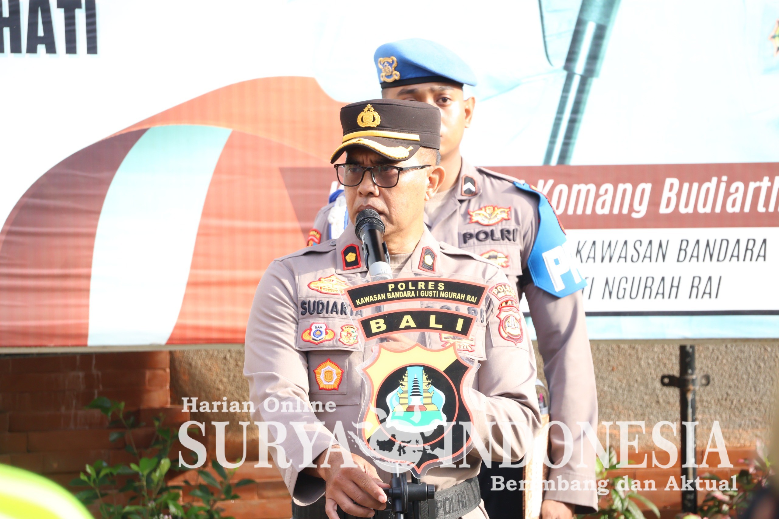 Badung, Surya Indonesia.net — Wakapolres Kawasan Bandara I Gusti Ngurah Rai, Kompol I Nengah Sudiarta, S.Sos., memimpin langsung Apel Pagi Jam Pimpinan yang dilaksanakan di halaman Mako Polres Kawasan Bandara I Gusti Ngurah Rai, Senin (9/2/2026).