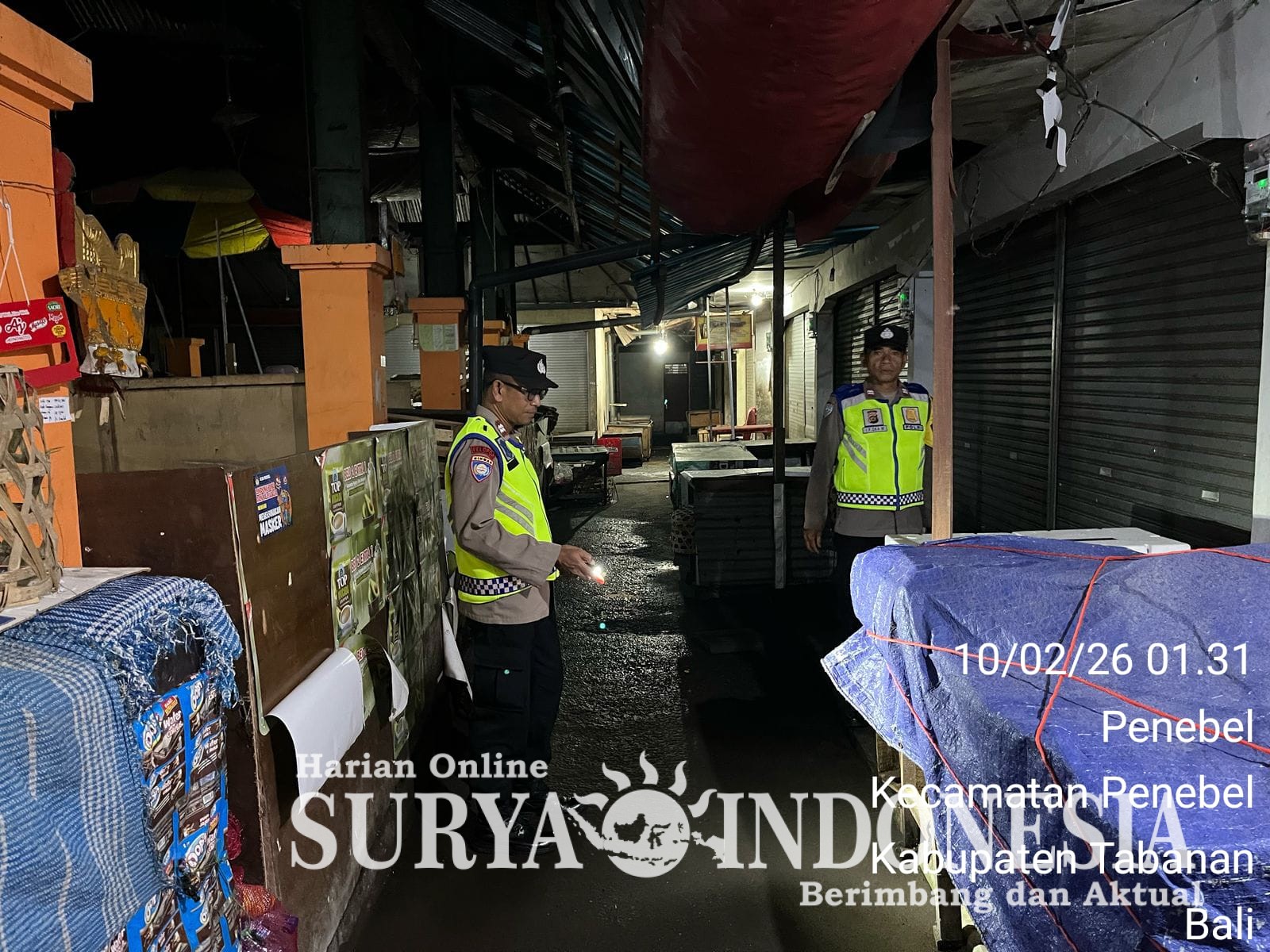 Tabanan, Surya Indonesia.net – Polsek Penebel Selasa 10 Pebruari 2026 pkl 03.00 wita sampai dengan 05.00 wita Guna tetap mewujudkan sitkamtibmas di wilayah hukum Polsek Penebel agar tetap kondusif, Perwira Pengawas Polsek Penebel Aiptu I Nyoman Sutawijaya memimpin personil piket fungsi melaksanakan patroli Subuh.