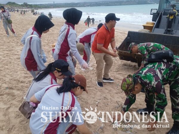 BALI – Badung,Surya Indonesia. Net – Dalam rangka Karya Bhakti Terpadu TNI di pesisir pantai, Danramil 1611-03/Kuta Mayor Inf Hendra Gunawan, memimpin langsung pelaksanaan kegiatan karya bhakti pembersihan sampah di sepanjang Pantai Kedonganan, Pantai Jimbaran, dan Pantai Kelan, Kecamatan Kuta, Kabupaten Badung. Kegiatan ini dilakukan guna menjaga kebersihan dan keindahan kawasan pantai yang menjadi salah satu destinasi penting di Bali, dengan jumlah peserta yang mengikuti mencapai sekitar lebih dari 500 orang. Selasa, (10/02/2026).