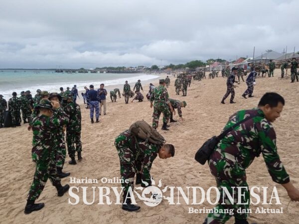 BALI – Badung,, Surya Indonesia.net – Dalam rangka Karya Bhakti Terpadu TNI di pesisir pantai, Danramil 1611-03/Kuta Mayor Inf Hendra Gunawan, memimpin langsung pelaksanaan kegiatan karya bhakti pembersihan sampah di sepanjang Pantai Kedonganan, Pantai Jimbaran, dan Pantai Kelan, Kecamatan Kuta, Kabupaten Badung. Kegiatan ini dilakukan guna menjaga kebersihan dan keindahan kawasan pantai yang menjadi salah satu destinasi penting di Bali, dengan jumlah peserta yang mengikuti mencapai sekitar lebih dari 500 orang. Selasa, (10/02/2026).