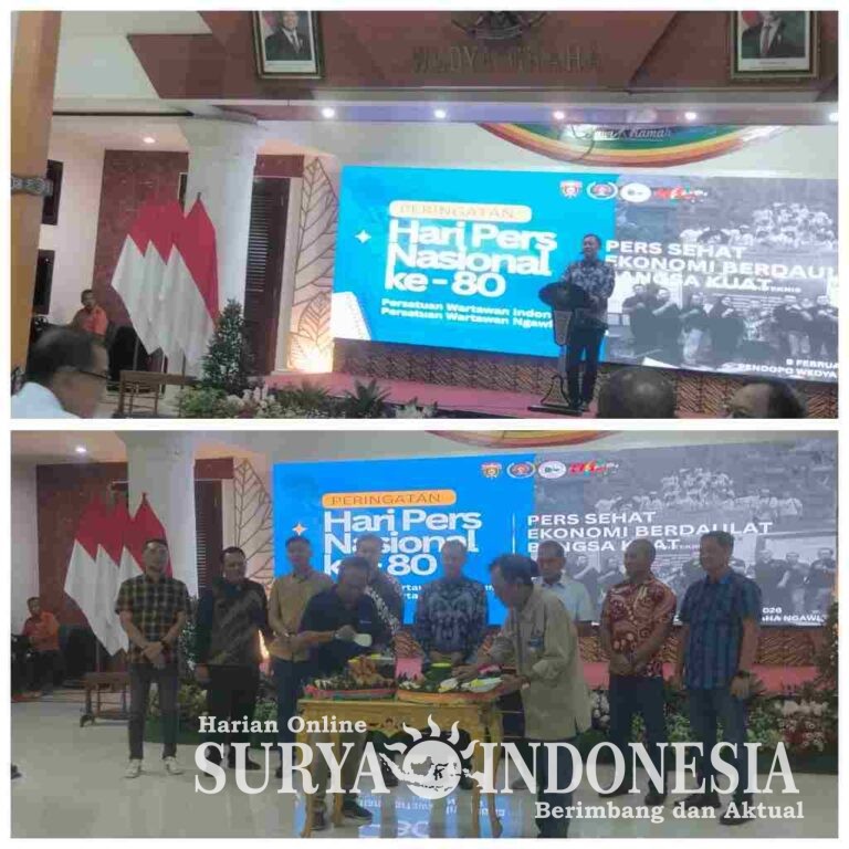 Ngawi, 09 Februari 2026 – Peringatan Hari Pers Nasional (HPN) ke-80 tahun 2026 digelar khidmat di Pendopo Wedya Graha, Kabupaten Ngawi, pada Senin malam (9/2/2026). Acara yang diselenggarakan Persatuan Wartawan Indonesia (PWI) bersama Persatuan Wartawan Ngawi ini menjadi ajang refleksi sekaligus penguatan peran pers dalam pembangunan daerah dan nasional.