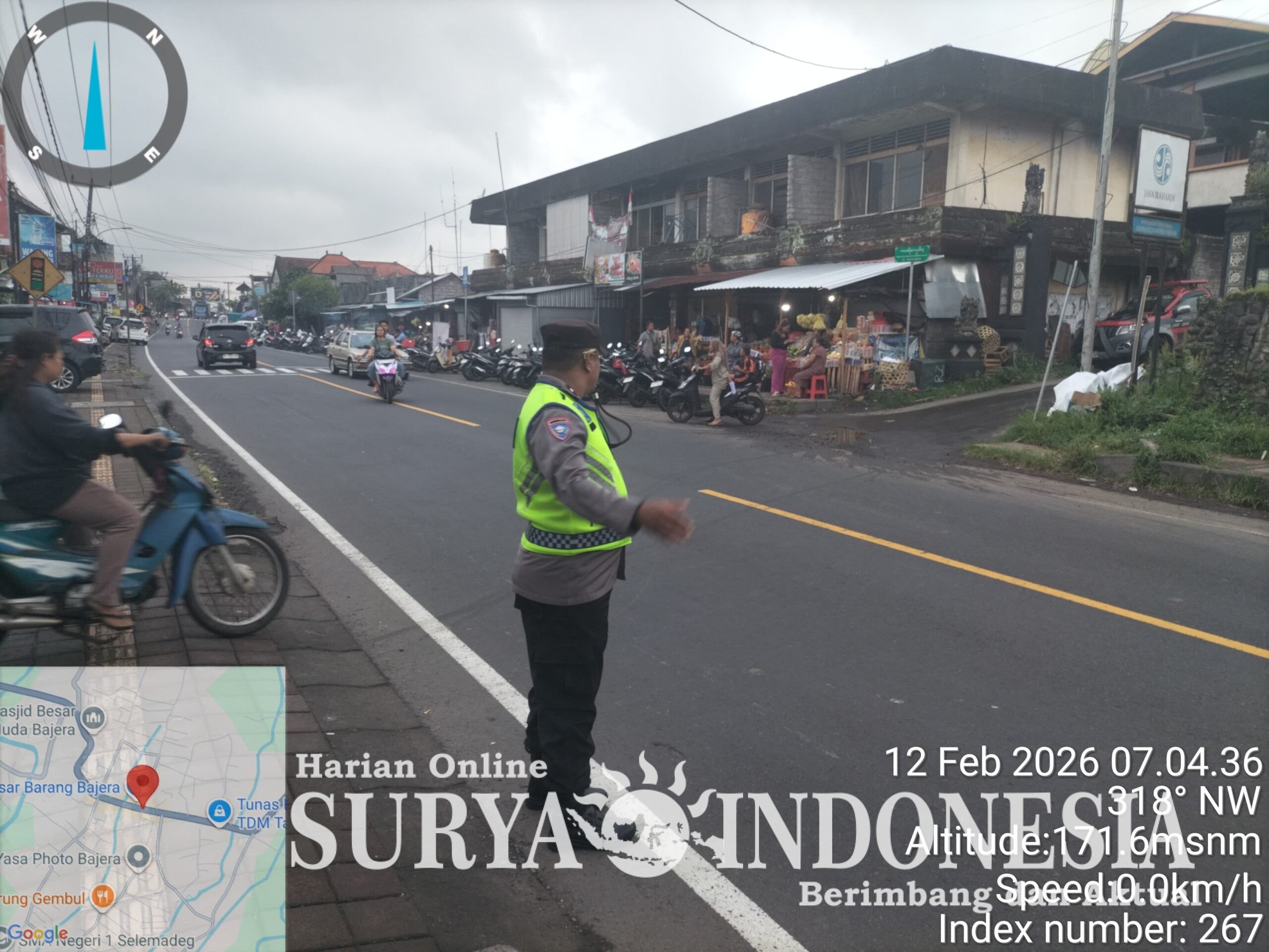 Tabanan, Surya Indonesia.net – Polsek Selemadeg mengintensifkan kegiatan Strong Point pagi untuk mengantisipasi lonjakan volume kendaraan di Simpang Pasar Bajera, Kamis (12/2/2026). Sejak pukul 06.30 WITA, personel Aipda I Made Dwi Adnyana bersama Aipda I Komang Tirtayasa, S.H., bersiaga melakukan pengaturan arus lalu lintas guna menjamin kelancaran aktivitas masyarakat di jalur utama logistik Denpasar-Gilimanuk.