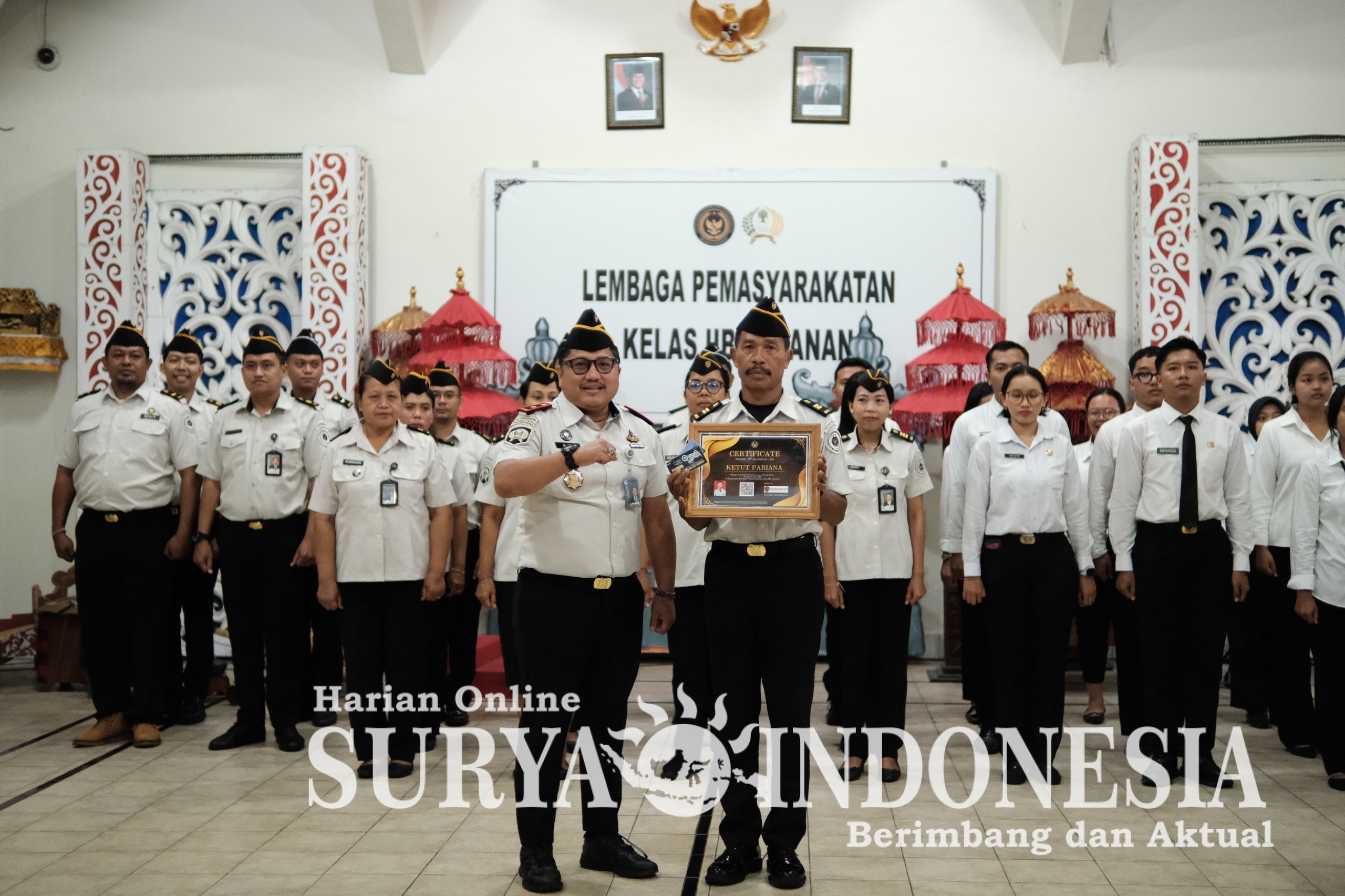 Tabanan, Surya Indonesia.net – Lapas Kelas IIB Tabanan menganugerahkan penghargaan Pegawai Teladan periode Januari 2026 kepada Komandan Jaga sekaligus pegawai senior, Ketut Pariana, dalam kegiatan yang digelar di Aula Candra Prabhawa, Kamis (12/02). Pemberian penghargaan ini menjadi bentuk apresiasi nyata atas kinerja, kedisiplinan, dan integritas yang ditunjukkan dalam pelaksanaan tugas sehari-hari.