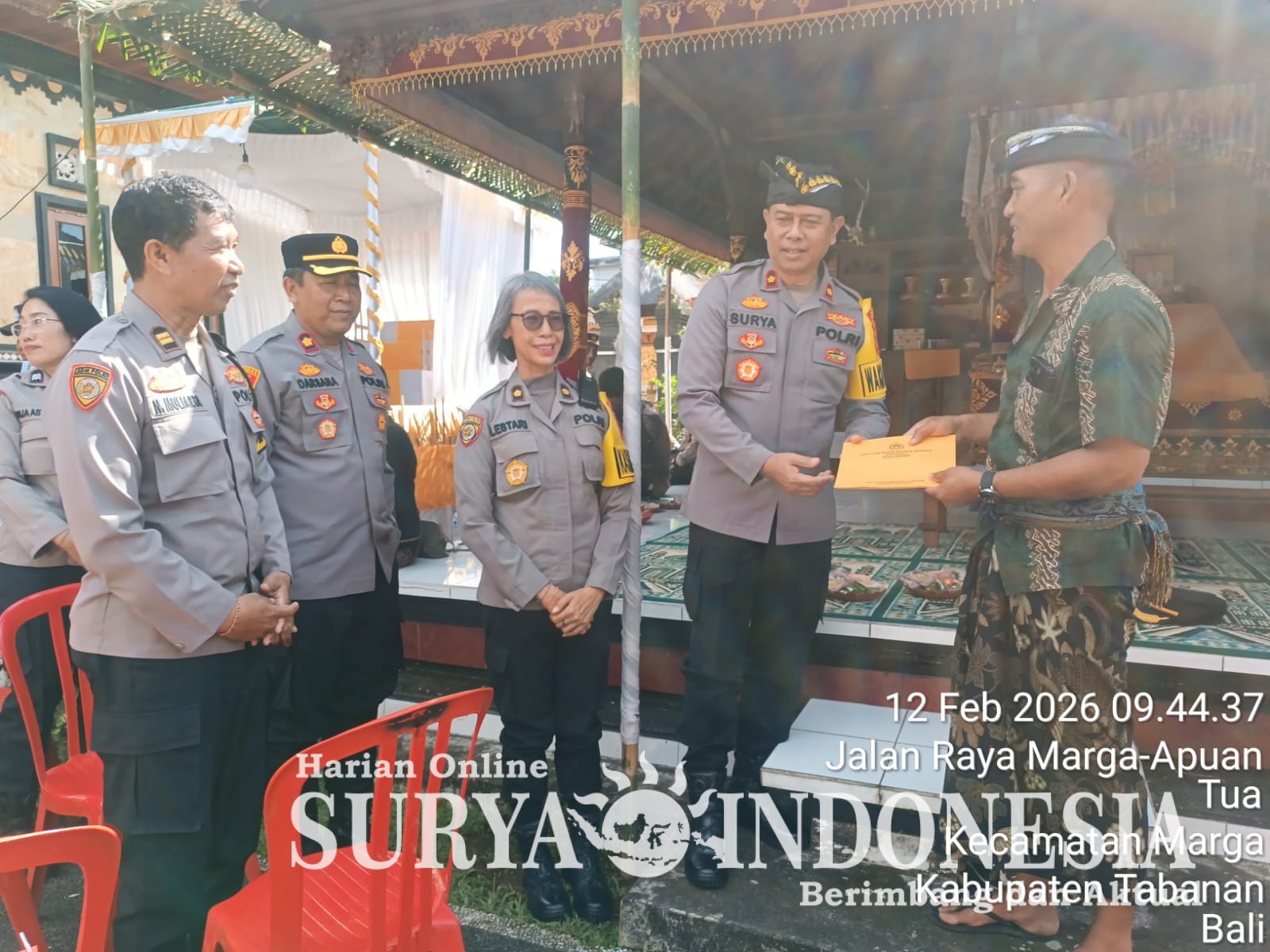 Tabanan , Surya Indonesia.net – Polsek Baturiti melaksanakan kegiatan melayat ke rumah duka di Banjar Tua, Desa Tua, Kecamatan Marga, Kabupaten Tabanan, pada Kamis, 12 Februari 2026, pukul 09.20 hingga 10.15 Wita. Kegiatan tersebut dilaksanakan atas meninggalnya almarhumah Ni Nyoman Kondor, ibu kandung dari AKP I Ketut Darmawan selaku Kanit Samapta Polsek Baturiti, sebagai bentuk empati dan solidaritas keluarga besar Polri.