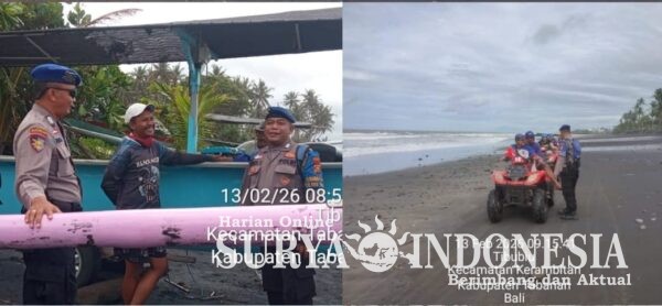 Tabanan,Surya Indonesia.net – Personel Satuan Polairud Polres Tabanan melaksanakan patroli pesisir dan sambang wilayah di Pantai Pasut, Jumat (13/02/2026) pukul 10.00 Wita. Kegiatan ini dilakukan sebagai langkah preventif untuk menjaga situasi keamanan dan ketertiban masyarakat (harkamtibmas) di kawasan pesisir serta memastikan aktivitas masyarakat dan nelayan berjalan aman dan lancar.