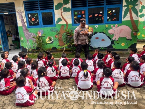 Sebagai Bentuk Polisi Sahabat Pelajar, Bhabinkamtibmas Desa Singakerta Sambangi Anak TK Kertasari