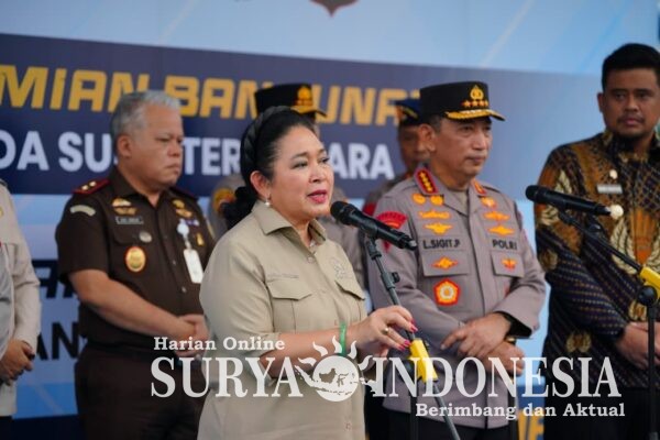 SUMUT, Surya Indonesia.net – Ketua Komisi IV DPR, Siti Hediati Hariyadi atau Titek Soeharto menghadiri pelepasan bantuan kemanusiaan Polri sebanyak 22 kontainer untuk didistribusikan kepada korban bencana alam di Aceh, Sumatra Utara, dan Sumatra Barat.
