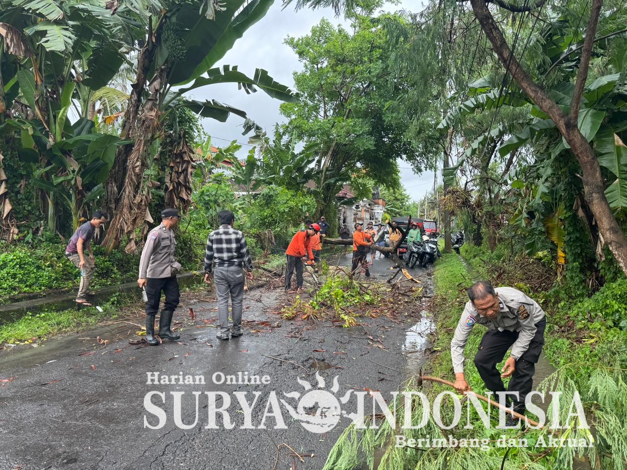 Personel Polsek Gianyar dipimpin Pawas AIPTU Dewa Putu Bawantara bersama piket fungsi, Bhabinkamtibmas Desa Tegaltugu, serta tim BPBD Kabupaten Gianyar langsung mendatangi lokasi kejadian. Petugas selanjutnya melakukan evakuasi dan pembersihan batang, dahan, serta ranting pohon agar jalan dapat kembali dilalui masyarakat.