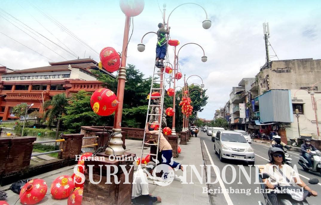 Denpasar,Surya Indonesia.net – Suasana perayaan Tahun Baru Imlek mulai terasa di kawasan Jalan Gajah Mada, Denpasar, sabtu (14/2). Sekitar 1.000 lampion mulai dipasang di sepanjang jalan tersebut dengan berbagai bentuk dan ukuran, menambah nuansa khas perayaan sekaligus mempercantik kawasan heritage Kota Denpasar.