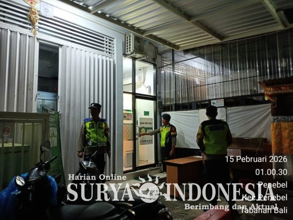 Tabanan,Surya Indonesia. Net – Polsek Penebel Minggu 15 Pebruari 2026 pkl 03.00 wita sampai dengan 05.00 wita Guna tetap mewujudkan sitkamtibmas di wilayah hukum Polsek Penebel agar tetap kondusif, Perwira Pengawas Polsek Penebel Ipda I Wayan Supartawan memimpin personil piket fungsi melaksanakan patroli Subuh.
