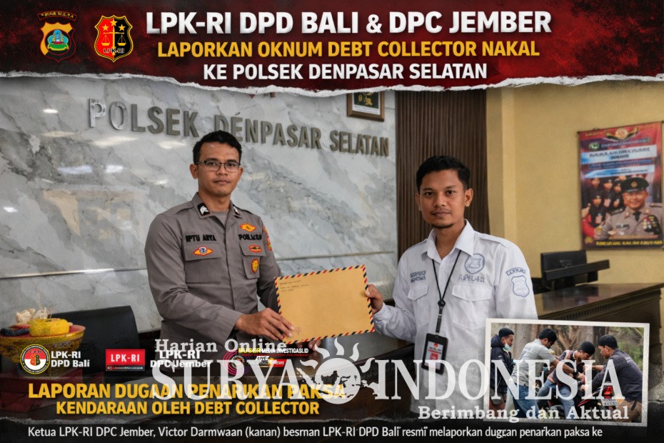 Bali, Surya Indonesia.net – Dewan Pimpinan Daerah Bali dari Lembaga Perlindungan Konsumen Republik Indonesia (LPK-RI) dan DPC LPK-RI Kabupaten jember secara resmi telah mengajukan pengaduan kepada pihak berwajib atas dugaan tindakan upaya penarikan paksa kendaraan milik konsumen oleh oknum yang mengaku sebagai debt collector.