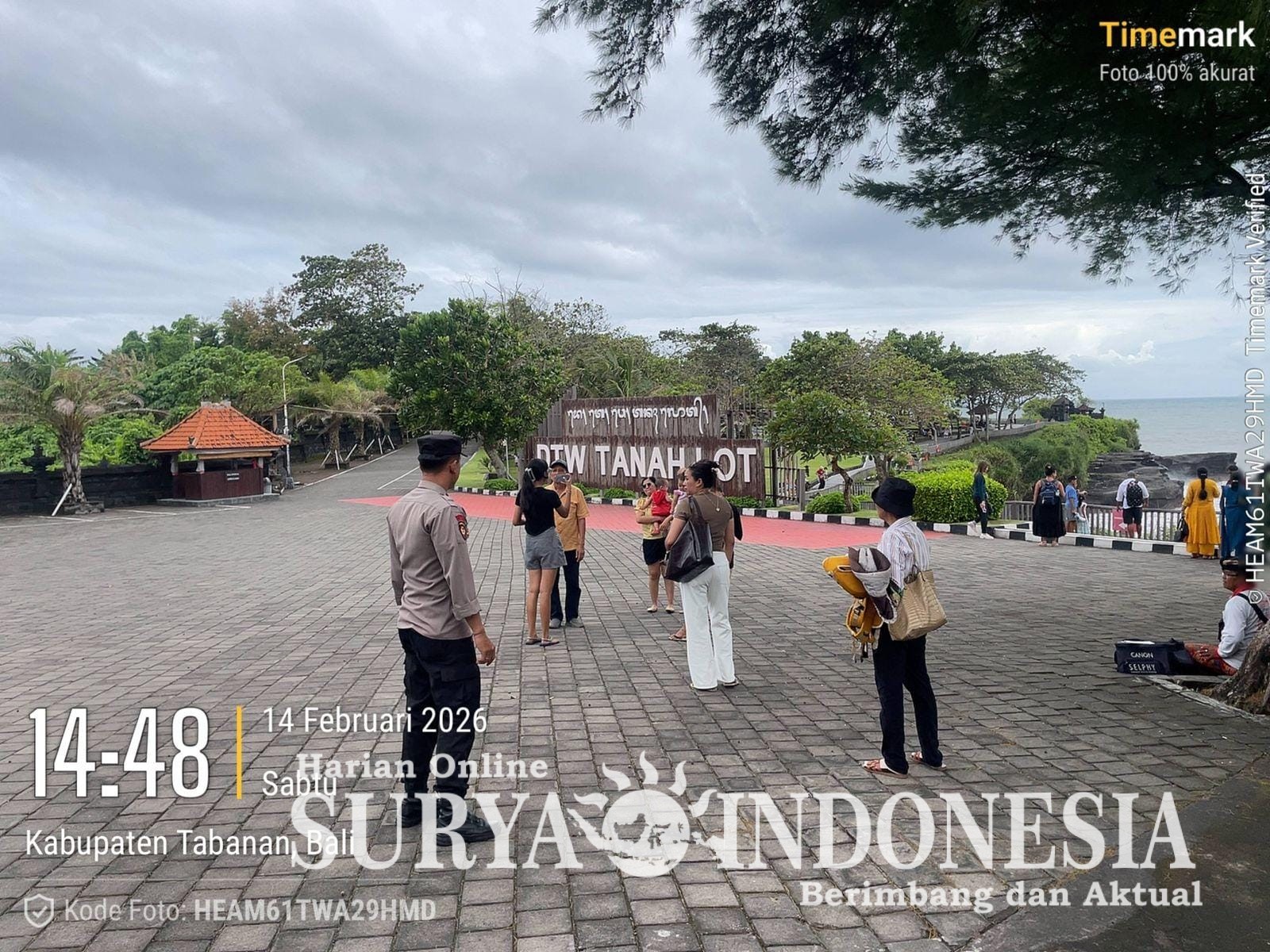 Hari Sabtu, 14-2-2026 pukul 14.00 s/d 18.00 wita, personil Polsubsektor Tanah Lot Bripka I Made Subargayasa dan Brigadir I Wayan Kertayasa di backup personil opsnal Polsek Kediri bersinergi dengan satuan pengamanan kawasan DTW Tanah Lot dan pecalang melaksanakan patroli di kawasan baik lokasi parkir, Artshop dan pantai.
