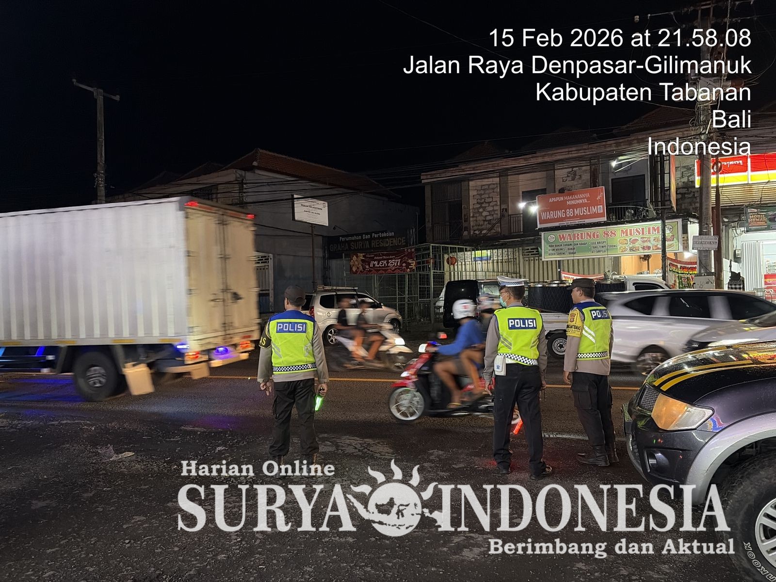 Tabanan, Surya Indonesia.net – Polsek Selemadeg. Menjelang hari raya Nyepi Caka 1948 dan Idulfitri 1447 H, Polsek Selemadeg menggelar Blue Light Patrol pada Minggu (15/2/2026), Pkl. 21:05 Wita, untuk memastikan stabilitas Kamtibmas. Dipimpin Pawas Aiptu Agus Purwanto, S.H., personel menyisir titik-titik vital mulai dari Perbankan, Pasar Senggol, Pertokoan, SPBU, Tempat Ibadah, hingga jalur Nasional guna mengantisipasi potensi tindak kriminalitas dan gangguan keamanan di wilayah hukum Selemadeg.