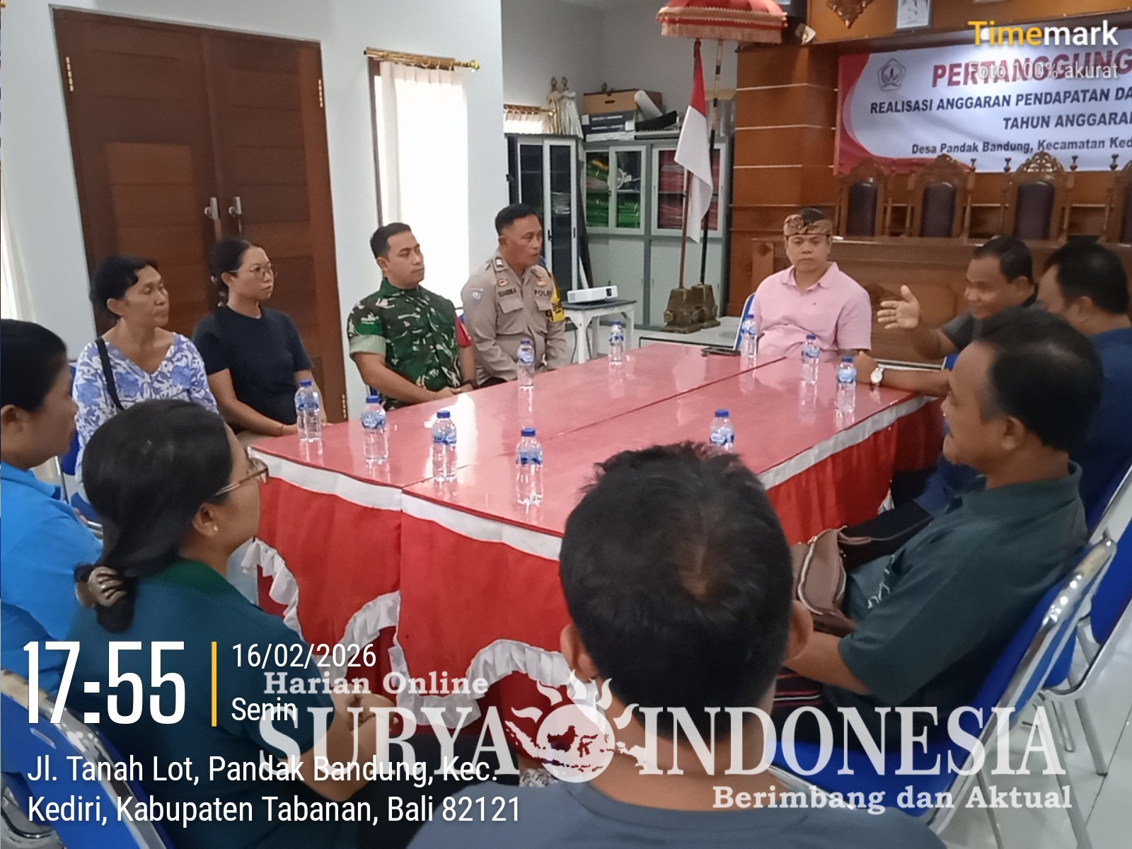 Bhabimkamtibmas desa Pandak Bandung Aiptu I Wayan Suardika Adnyana bersinergi dengan Babinsa pada hari Senin, 16-2-2026 pukul 18.00 s/d 19.00 Wita bertempat di Aula kantor desa Pandak Bandung menghadiri rapat koordinasi tentang akan dilaksanakan pemberian paket sembako dari pihak Nuanu kepada warga Banjar Laing yang rencananya akan dilaksanakan pada hari Rabu, 18-2-2026.