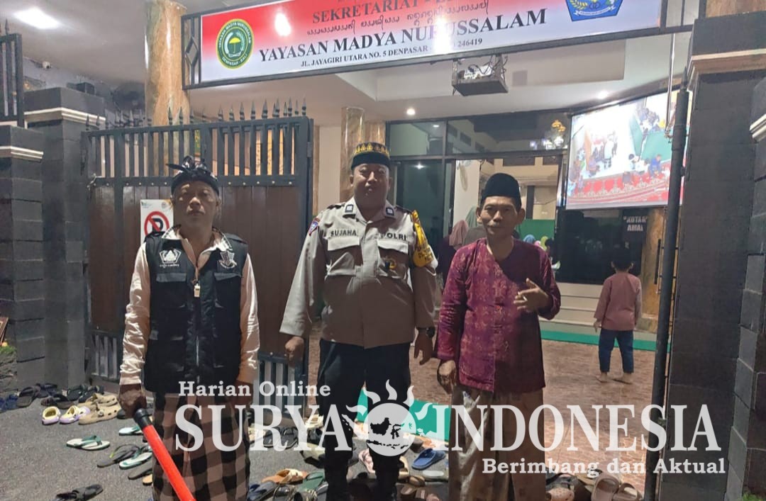 Denpasar, Surya Indonesia.net – Dalam rangka menjaga situasi kamtibmas tetap kondusif menjelang Bulan Suci Ramadhan 1447 H/2026 M, Bhabinkamtibmas Desa Sumerta Kauh Aiptu I Putu Sujana, bersinergi bersama Pecalang Desa Sumerta Kauh melaksanakan atensi dan pengamanan kegiatan doa bersama/megengan yang digelar di Gedung Yayasan Madya Nurussalam, Jl. Jayagiri No. 5, Denpasar Timur, Senin (16/02/2026) malam.