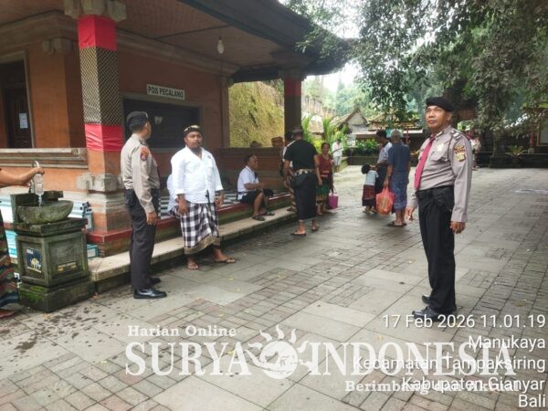 Gianyar, Surya Indonesia.net – Satuan Pengamanan Objek Vital (Sat Pamobvit) Polres Gianyar melaksanakan patroli dan pengamanan di kawasan wisata suci Pura Tirta Empul, Desa Manukaya, Kecamatan Tampaksiring, Selasa (17/2/2026).