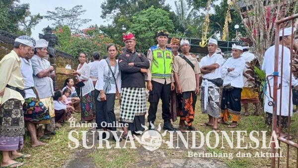Tabanan , Surya Indonesia.net – Polsek Pupuan, Rabu 18 Februari 2026, pukul 09.00 s/d 12.00 Wita, Bhabinkamtibmas Desa Belimbing Aiptu I Gd Kt Alit Widiana bersama Pecalang Desa Adat Belimbing melaksanakan pengamanan kegiatan Piodalan di Pura Batur Pendem, Desa Belimbing, Kecamatan Pupuan. Kehadiran Bhabinkamtibmas merupakan bentuk pengabdian Polri dalam menjamin keamanan dan kenyamanan masyarakat yang melaksanakan kegiatan keagamaan.