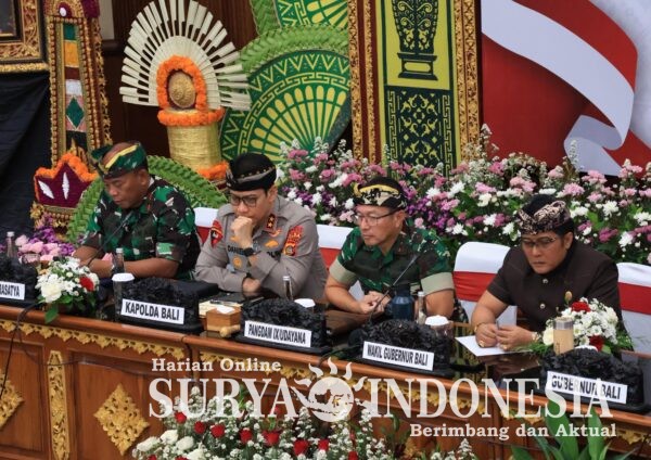 BALI – Denpasar, Surya Indonesia.net – Kamis (19/2/2026) Dandim 1611/Badung Kolonel Inf I Putu Tangkas Wiratawan, S.I.P., turut menghadiri Rapat Koordinasi Forum Koordinasi Pimpinan Daerah (Forkopimda) Diperluas Tingkat Provinsi dan Kota/Kabupaten se-Bali Tahun 2026. Kegiatan yang dipimpin oleh Gubernur Bali Dr. Ir. I Wayan Koster, M.M., berlangsung di Ruang Rapat Wiswa Sabha Utama, Kantor Gubernur Bali, Jl. Basuki Rahmat No.1, Ds. Sumerta Kelod, Kec. Denpasar Timur, Kota Denpasar, dengan jumlah peserta sekitar 100 orang.