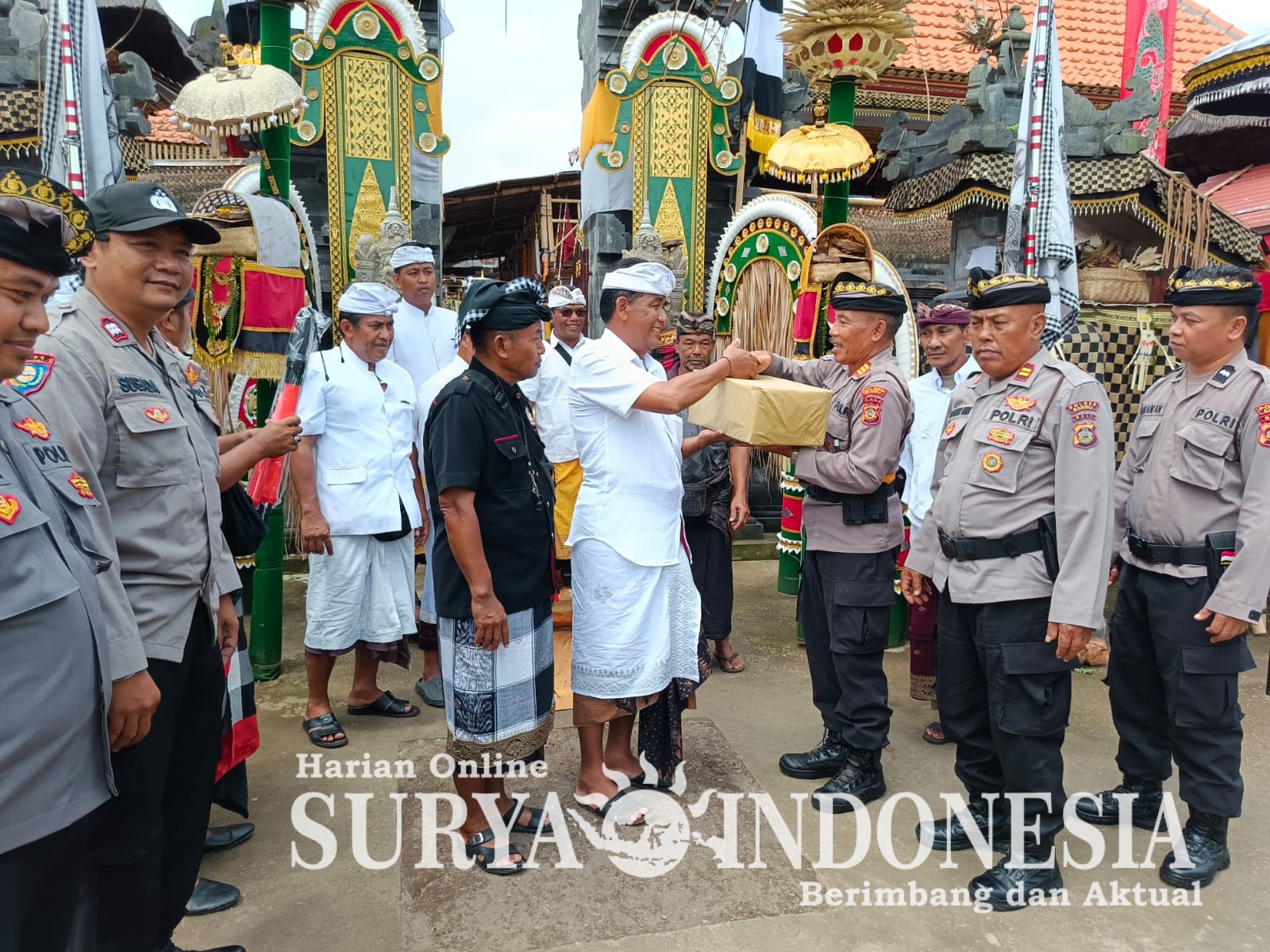 Sebagai bentuk dukungan dan kepedulian, Kasat Binmas turut menyerahkan sarana kontak kepada Bendesa Adat Sidembunut dan Pecalang. Penyerahan tersebut diharapkan dapat menunjang pelaksanaan tugas pengamanan adat serta mempererat kemitraan antara kepolisian dan masyarakat.