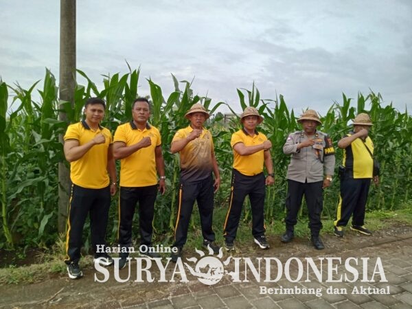 program pemerintah tentang Ketahanan Pangan melalui swasembada pangan yang dilaksanakan secara berkelanjutan, personil Polsek Kediri melaksanakan penanaman jagung Kwartal I 2026.