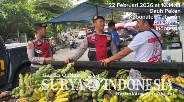 Tabanan, Surya Indonesia.net – Dalam rangka menjaga stabilitas kamtibmas di wilayah hukum Polres Tabanan, Satuan Samapta melaksanakan kegiatan Patroli Dialogis berbasis lingkungan pada Minggu, 22 Februari 2026, pukul 09.00 Wita s/d 11.00 Wita. Kegiatan ini dilaksanakan oleh Aipda I Made Sugianta bersama Bripda I Made Indra Yoga Prabawa dengan menyasar sejumlah titik keramaian masyarakat.