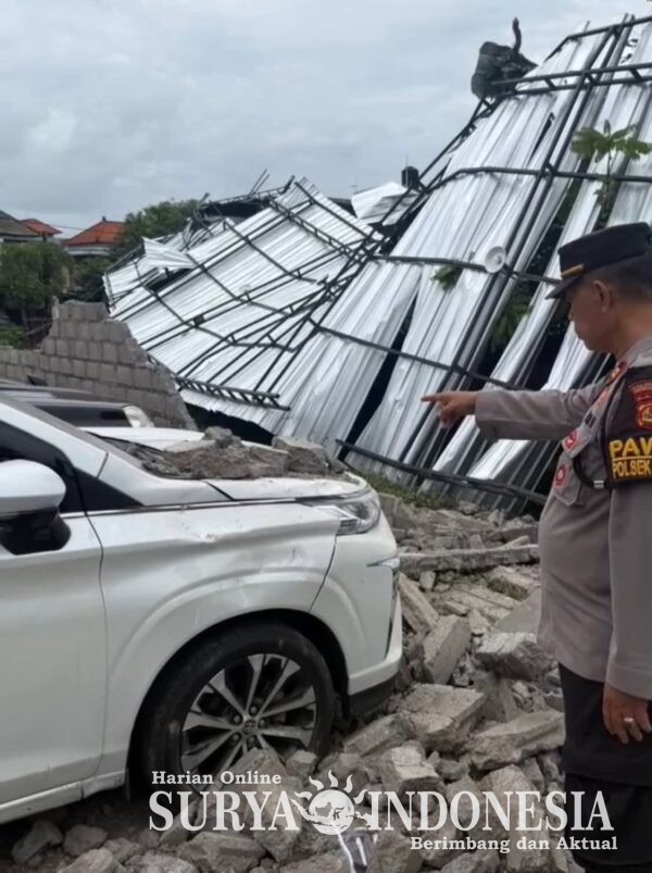 Denpasar , Surya Indonesia.net – Cuaca buruk berupa angin puting beliung disertai hujan yang terjadi siang ini mengakibatkan tembok roboh dan menimpa lahan bangunan garase mobil milik warga di Jalan Gunung Payung, Denpasar, Senin (23/2/2026).