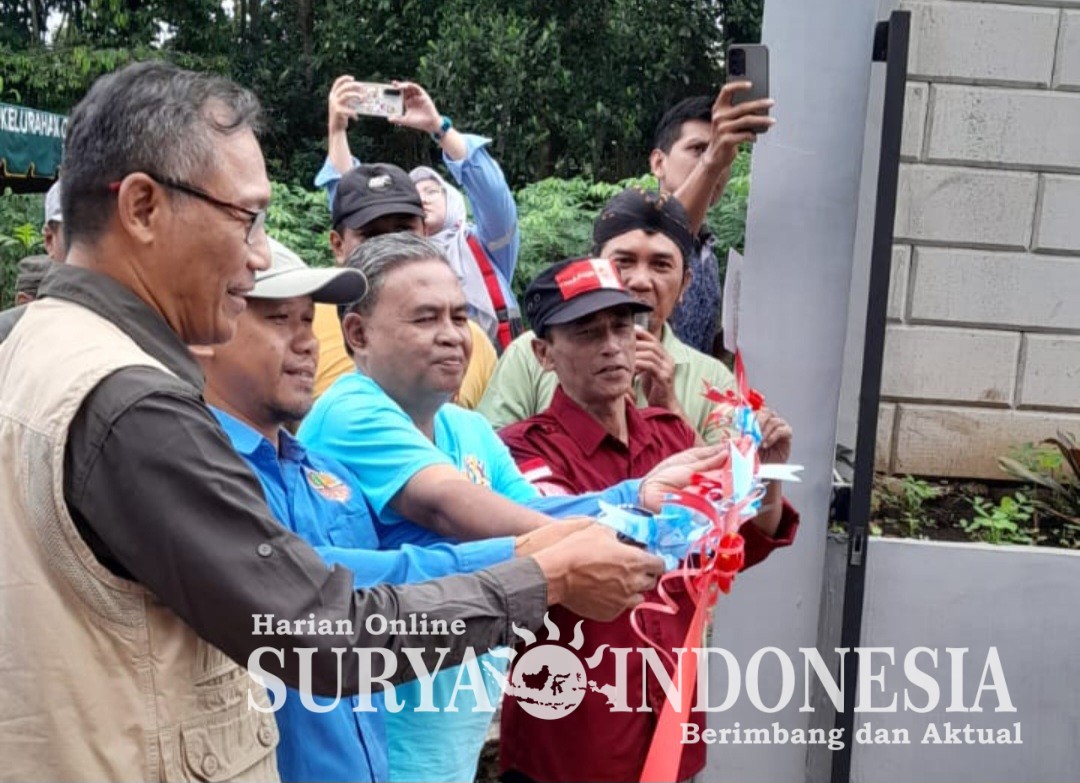 Fahmi fauzan melakukan pemotongan pita sebagai peresmian atas dibuka nya TPS 3 R Nawasena kelurahan Cemorokandang.