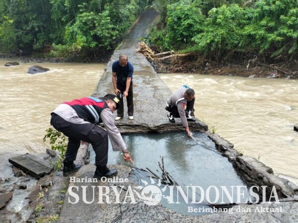 Polsek Selemadeg Atensi Jembatan Ansoka Yang Amblas Akibat Cuaca Ekstrem