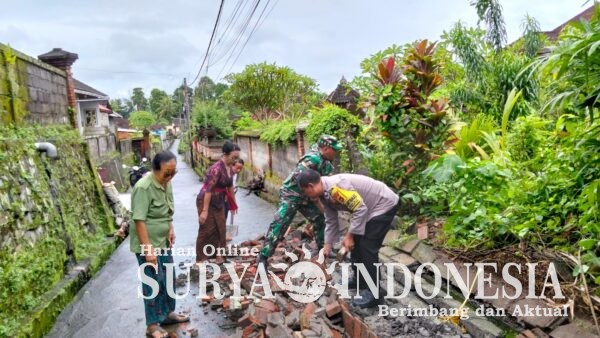 BLAHBATUH – GIANYAR,, Surya Indonesia.net – respons cepat kembali ditunjukkan Bhabinkamtibmas Desa Bedulu Polsek Blahbatuh, Aiptu I Putu Suadnya, saat mendatangi lokasi bencana alam berupa robohnya tembok penyengker milik warga di Banjar Tengah, Desa Bedulu, Kecamatan Blahbatuh, Kabupaten Gianyar, pada Selasa (24 Pebruari 2026) pukul 15.45 Wita. Tembok sepanjang kurang lebih tiga meter dengan tinggi dua meter tersebut roboh akibat hujan lebat yang mengguyur wilayah sejak dini hari dan diperkirakan terjadi sekitar pukul 02.00 Wita.