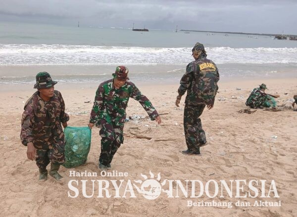 BALI – Badung,Surya Indonesia. Net – Berlangsungnya karya bhakti pembersihan sampah di pantai Bali, pada 26 Februari 2026. Kegiatan pembersihan sampah di sepanjang Pantai Kedonganan, Kecamatan Kuta, Kabupaten Badung, telah sukses dilaksanakan hari ini. Kegiatan yang bertujuan untuk menjaga kebersihan dan keindahan kawasan pantai ini dipimpin langsung oleh Danramil 1611-01/Denpasar Timur Kapten Inf I Wayan Suara.