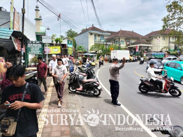 Guna memastikan situasi tetap terkendali, Kanit Intelkam AKP I Nyoman Sumertana, S.H., memimpin langsung jalannya pengamanan dengan mengerahkan empat personel Polri dibantu oleh dua Pemuda Masjid setempat. Kolaborasi ini berhasil menciptakan alur lalu lintas yang tertib di sekitar lokasi serta menjamin rangkaian ibadah berlangsung aman dan lancar hingga berakhir pada pukul 13.10 Wita.