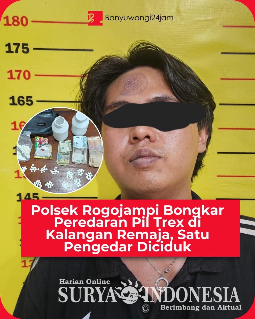 Banyuwangi , Surya Indonesia.net – Unit Reskrim Polsek Rogojampi mengungkap kasus peredaran obat keras berbahaya (okerbaya) dalam rangka Operasi Pekat Semeru 2026. Seorang pria berinisial YG (26), warga Kecamatan Rogojampi, diamankan bersama ratusan butir pil Trihexyphenidyl atau pil trex.