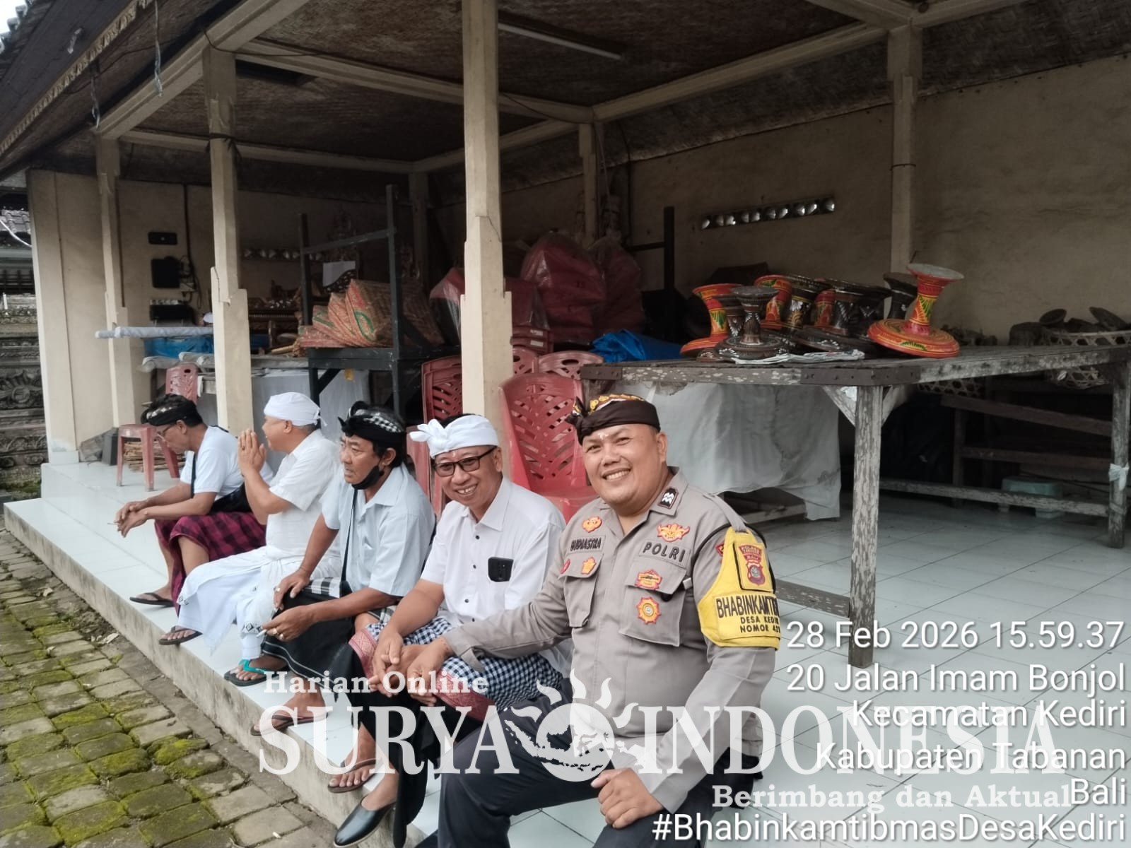 Hari Sabtu tanggal 28 Pebruari 2026,Pukul 16.00 s/d 19.00 wita, Bertempat Di Pura Puseh Lan Desa Adat Kediri Desa Kediri, Kec. Kediri, Kab. Tabanan Bhabimkamtibmas desa Kediri Aiptu I Made Oka Budiastra menghadiri kegiatan Rapat / Paruman acara Nyanggra Hari Raya Nyepi.