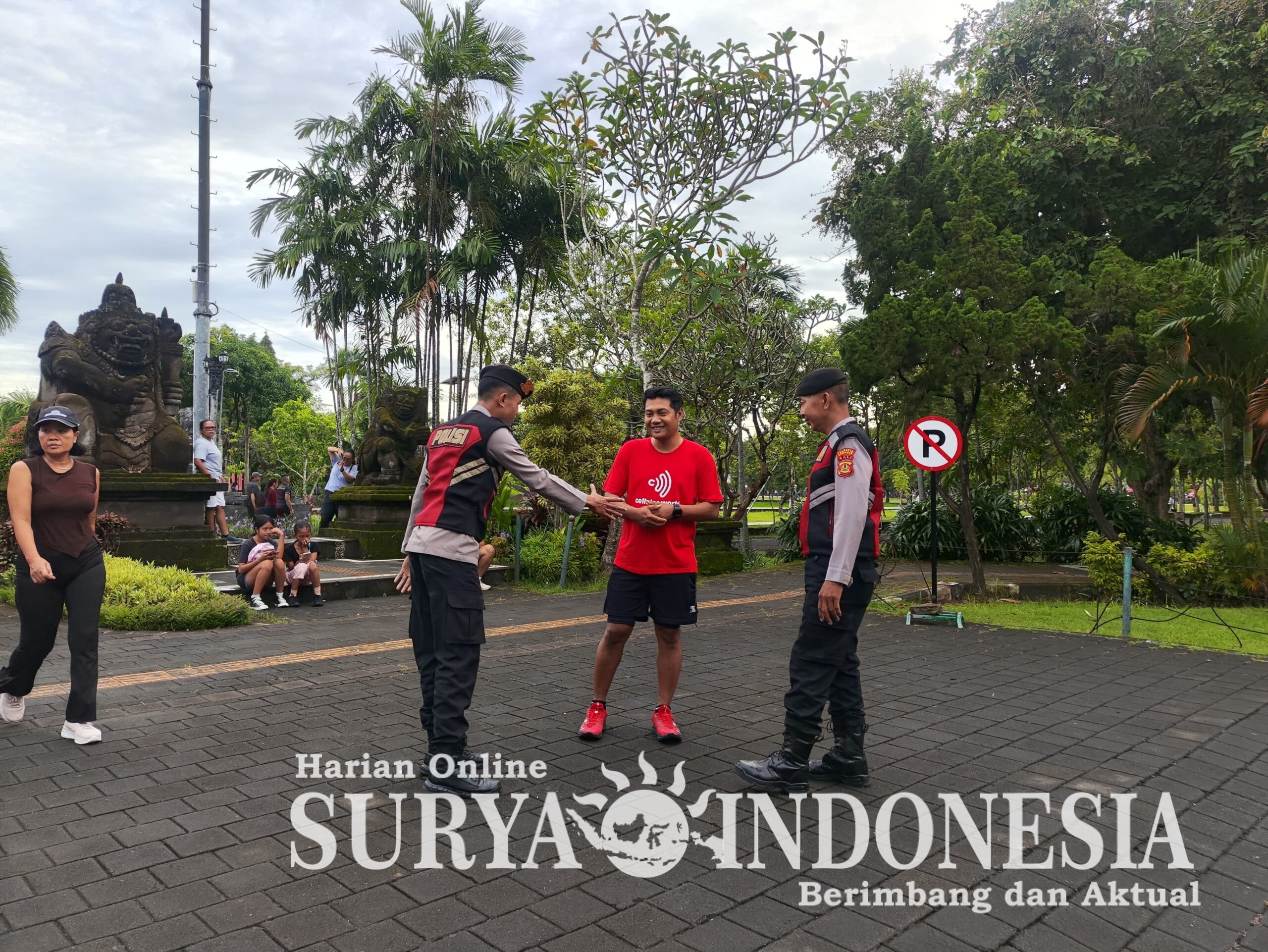 Personel melaksanakan patroli jalan kaki di kawasan Monumen Bajra Sandhi dan area Lapangan Renon, dengan memberikan atensi kepada masyarakat yang sedang berkunjung maupun berolahraga. Dalam kesempatan tersebut, petugas berdialog langsung dengan warga, menyampaikan pesan-pesan kamtibmas serta mengimbau agar bersama-sama menjaga ketertiban dan keamanan lingkungan.