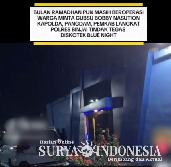 Binjai, Surya Indonesia.net – Kapoldasu, Irjen Pol Whisnu Hermawan Februanto diminta turun tangan langsung menindak Tempat Hiburan Malam (THM) yang jadi tempat peredaran narkoba, Blue Night yang berada di Jalan Emplasmen, Kwala Mencirim, Kecamatan Sei Bingai, Kabupaten Langkat. Pasalnya, sampai saat ini Kapolres Binjai, AKBP Mirzal Maulana terkesan tutup mata dengan aktivitas Blue Night yang telah merusak kesucian Bulan Ramadhan.