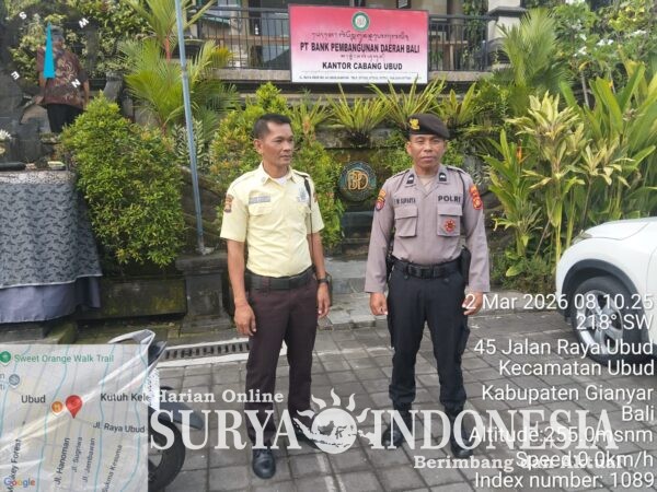 Gianyar, Surya Indonesia.net – Dalam rangka menjamin keamanan dan kenyamanan masyarakat, personel Satuan Pengamanan Obyek Vital (Sat Pamobvit) Polres Gianyar melaksanakan kegiatan pengamanan dan penjagaan di sejumlah obyek vital perbankan, Senin (2/3/2026). Kegiatan ini menyasar beberapa lokasi strategis, di antaranya Bank BNI Cabang Ubud, Bank BPD Cabang Ubud, serta Bank BNI KCP Gianyar.